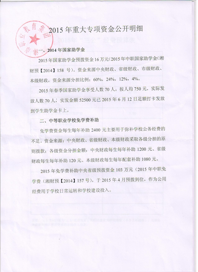 津市职教集团2015年财务各项预算及重大专项资金明细公示